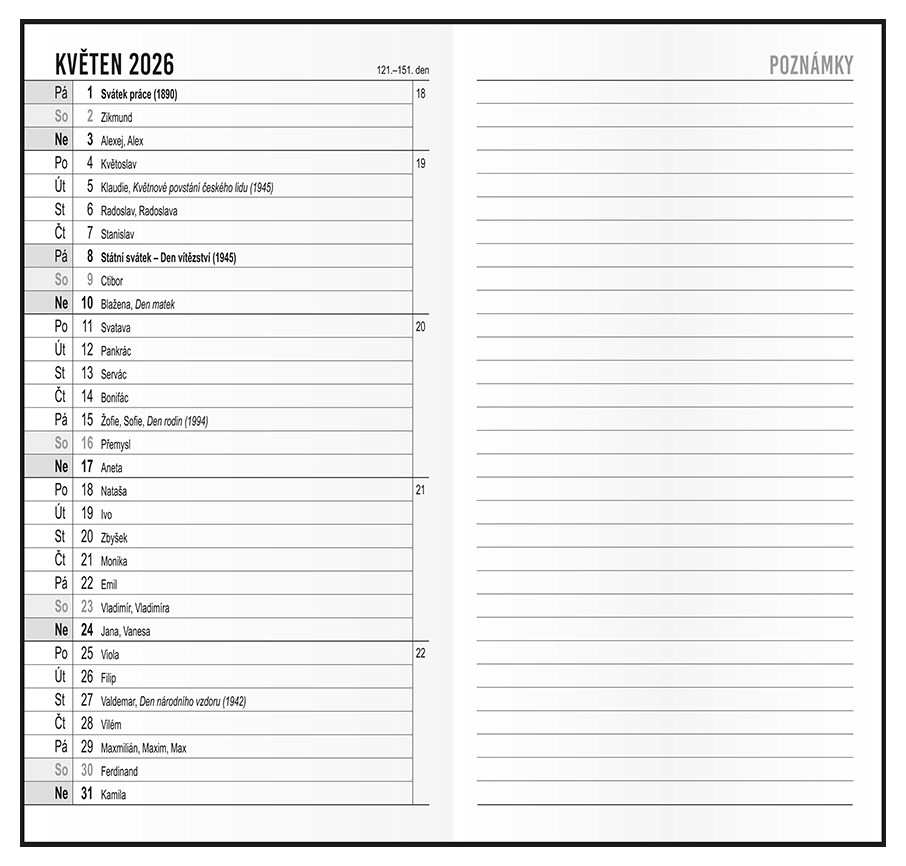 Měsíční diář v jednoduché měkké vazbě V1 v oblíbeném formátu a moderním kraftovém obalu. Hnědý přírodní papír Kraft, tištěná grafika, šitá vazba v1, ofset, 70g/m2. Formát 110 x 210 mm.
