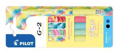 Limitovaná kolekce Pilot G-2 Flow. Díky novým zářivým 3D vzorům a elegantnímu provedení promění G-2 Flow vaše každodenní psaní ve vizuální zážitek a vnese na váš stůl výrazný a moderní nádech. Jedinečná povrchová úprava a atraktivní design dodávají rolleru nenuceně moderní vzhled, který vynikne s každým tahem.“ Výsuvný gelový roller s gumovým úchopem a vyměnitelnou náplní. Modrá a růžová píší modře, žlutá a zelená píší černě. Šířka hrotu 0,7 mm, šířka stopy 0,32 mm. Náplň 2606